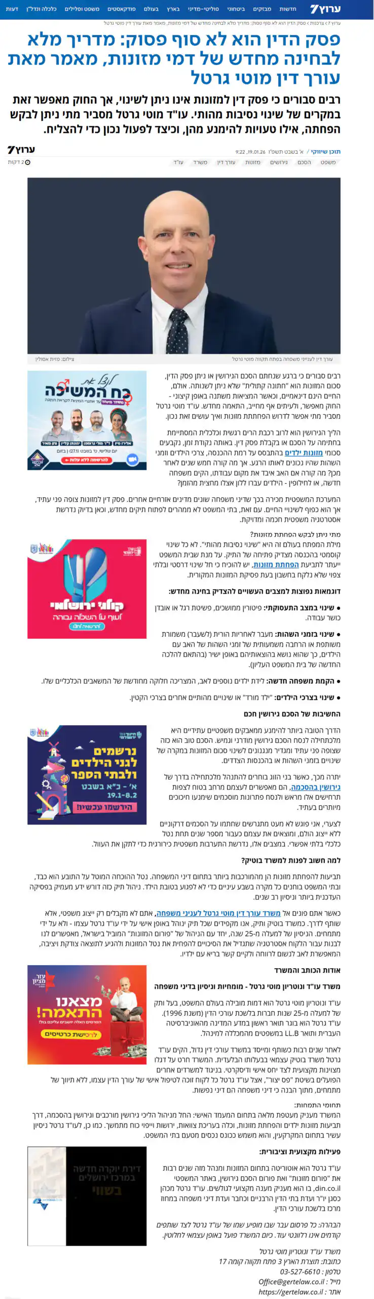 פסק הדין הוא לא סוף פסוק: המדריך המלא לבחינה מחדש של דמי המזונות מאמר מאת עורך דין מוטי גרטל | כתבה שפורסמה בערוץ 7 בתאריך: 19.01.2026