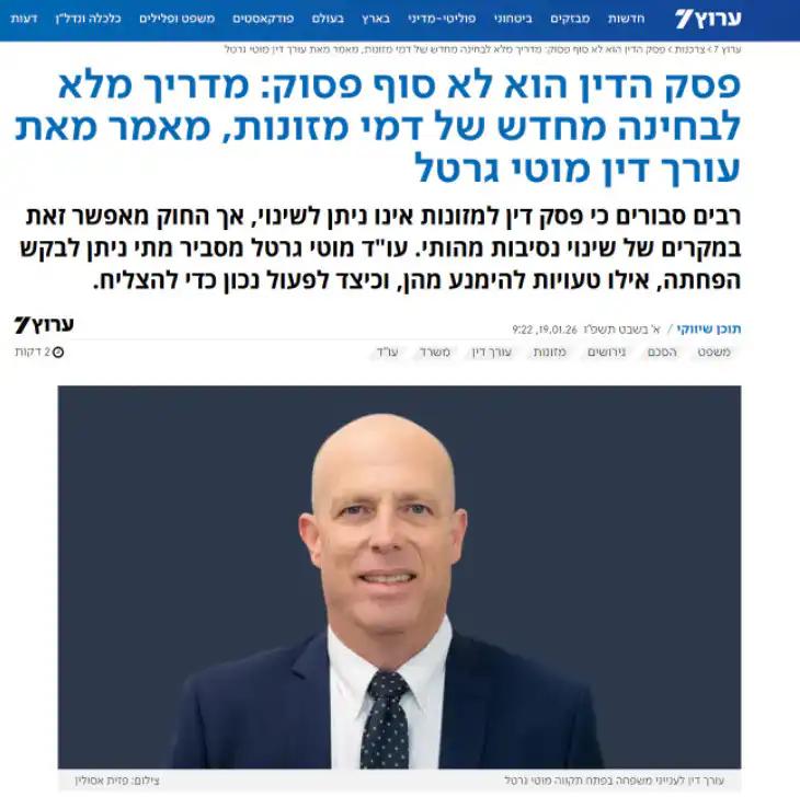 פסק הדין הוא לא סוף פסוק: המדריך המלא לבחינה מחדש של דמי המזונות מאמר מאת עורך דין מוטי גרטל | כתבה שפורסמה בערוץ 7 בתאריך: 19.01.2026